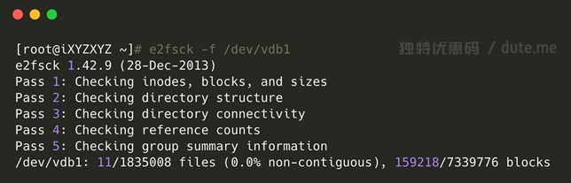 e2fsck 命令输出结果如下: