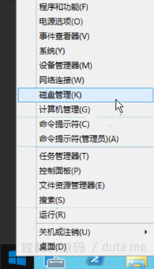 在 Windows Server 桌面,右键单击开始图标,选择磁盘管理。